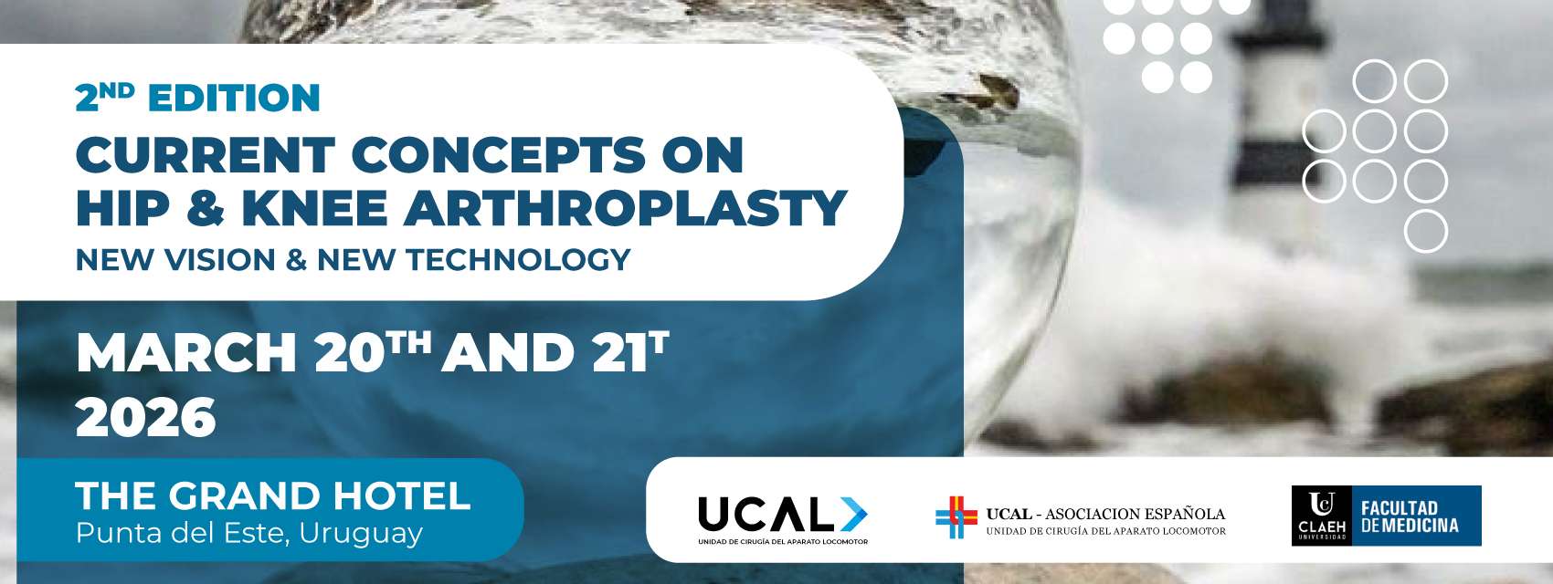 Los días 20 y 21 de marzo de 2026, en los salones del Grand Hotel Punta del Este, se realizará la segunda edición del congreso “Current Concepts on Hip & Knee Arthroplasty”, un evento de referencia en cirugía de reconstrucción articular.